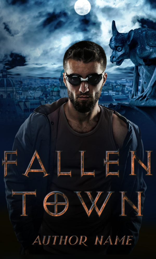 Details: Fallen Town: Premade Book Cover. A vigilante of a gothic horror patrols the city streets. Suitable for action & adventure, horror, paranormal book genres.