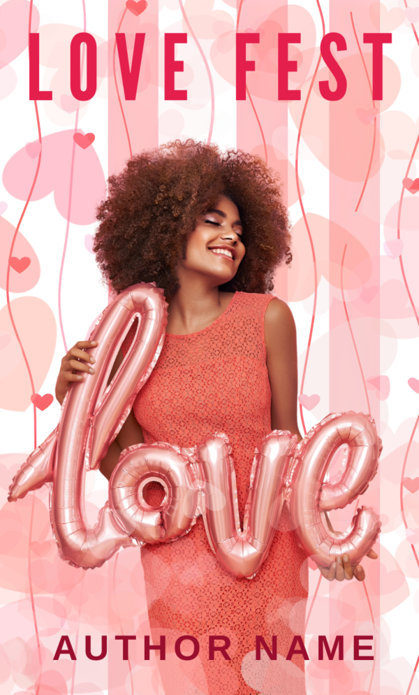 valentines chick lit premade book cover black woman happy Love Fest Premade Book Cover