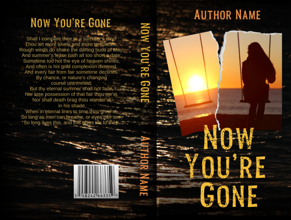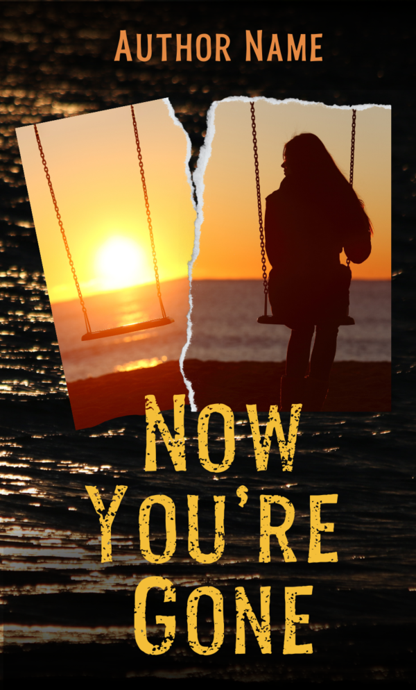 Details: Now You’re Gone: Premade Book Cover. Suitable for Romance, Young Adult, Drama, Mystery. Girl on a beach at sunset.