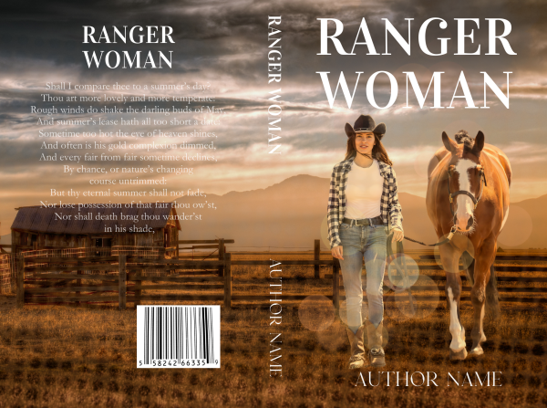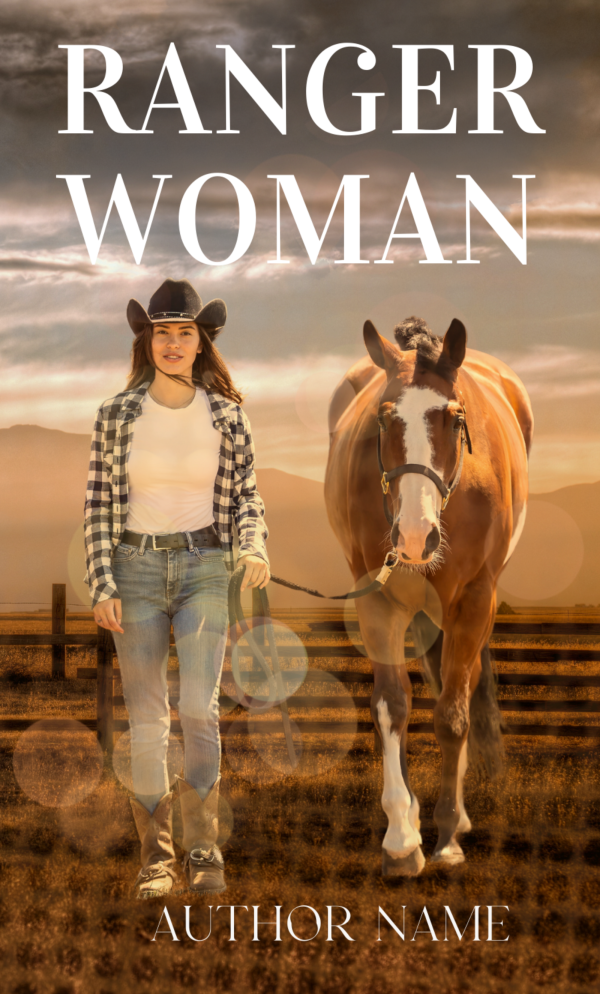 Details: Ranger Woman: Premade Book Cover. Suitable for Romance, Drama. Horse-rider ranch, cowgirl, Montana.