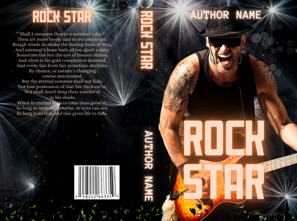 rock star premade book cover. man with guitar singing on stage Rock Star Premade Book Cover
