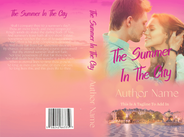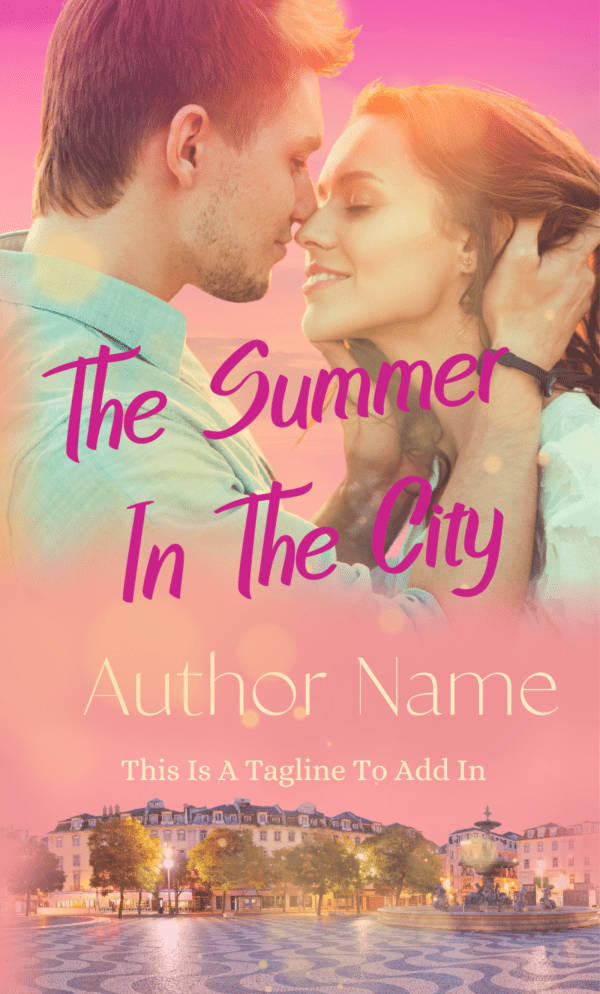 Details: Summer In The City: Premade Book Cover. Image of a couple in love. Summer city background. Suitable for romance genres.