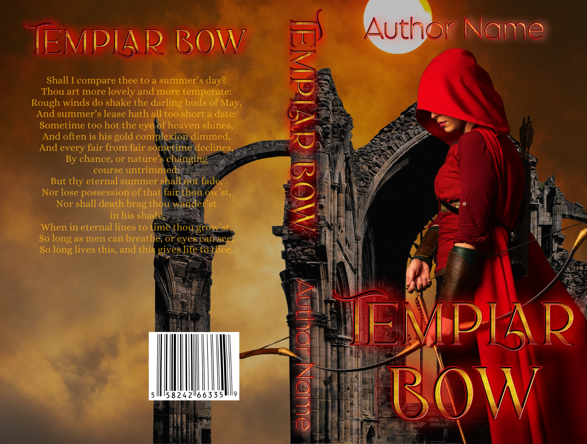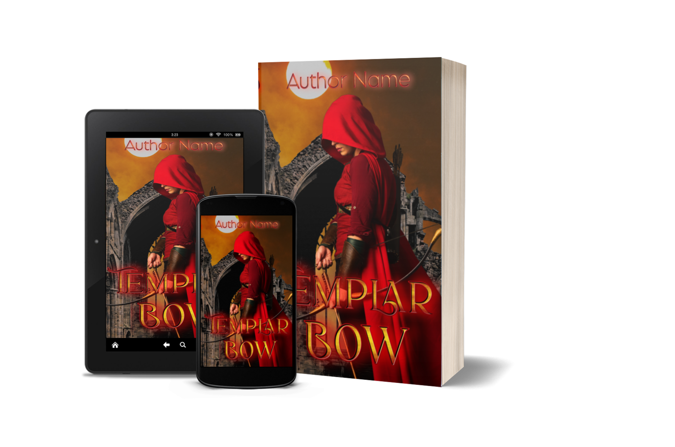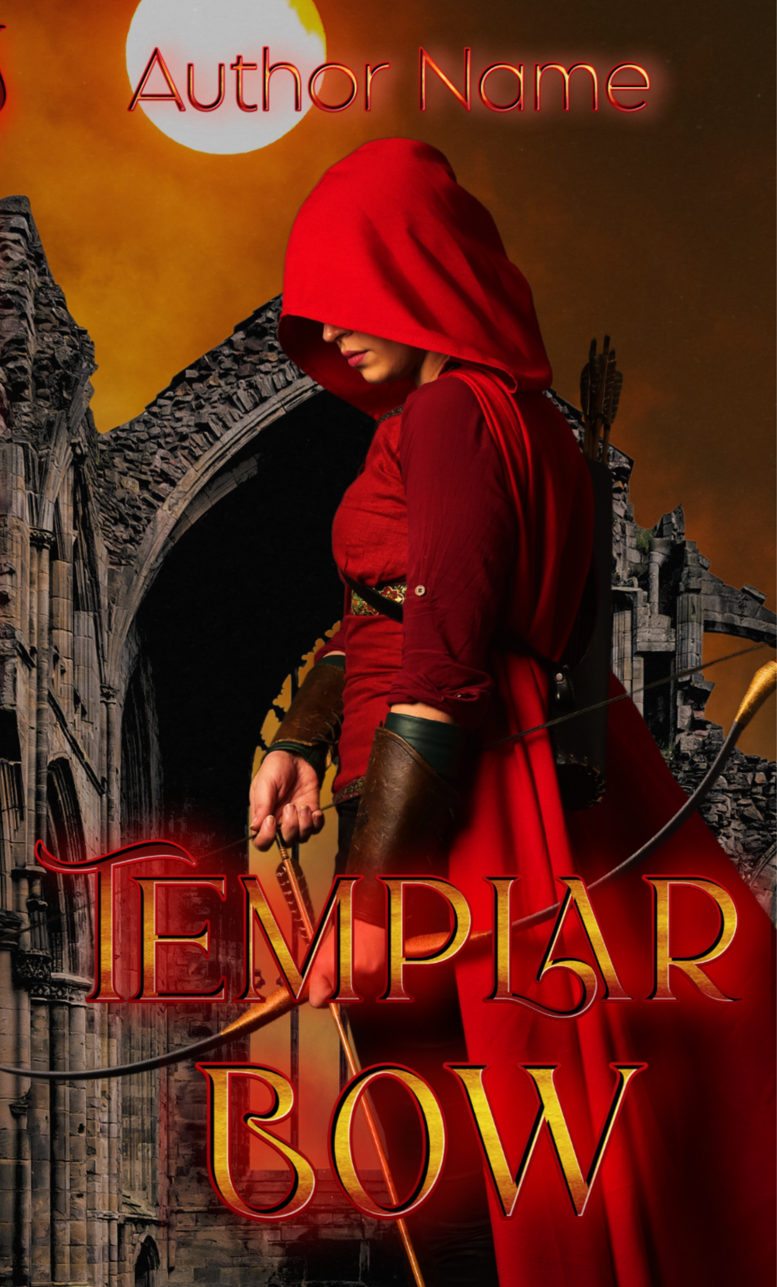 Details: Templar Bow: Ready Made Book Cover. Portrait of a woman in red cape with bow and arrow. Like Knight’s Templar or Assassin’s Creed. Suitable for romance, action, adventure.