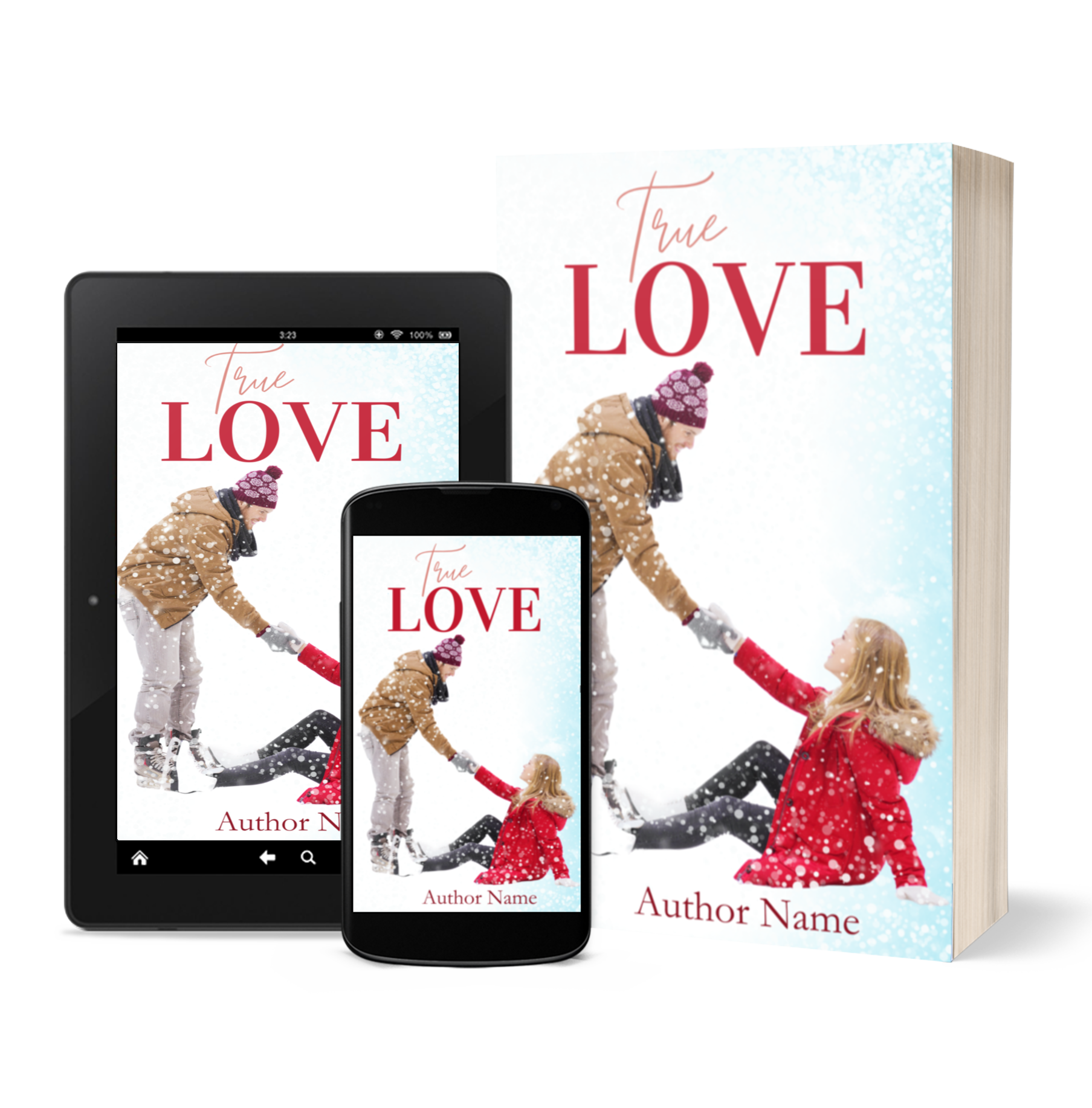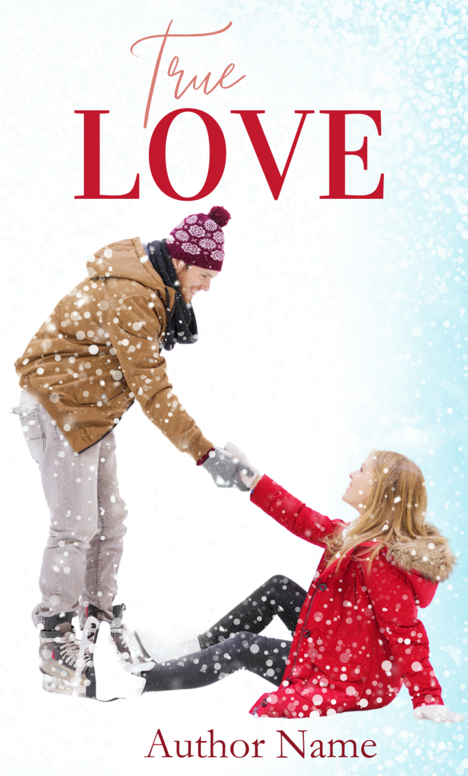 Details: True Love Premade Book Cover. Suitable for Romance, Drama. Couple in their thirties ice-skating.